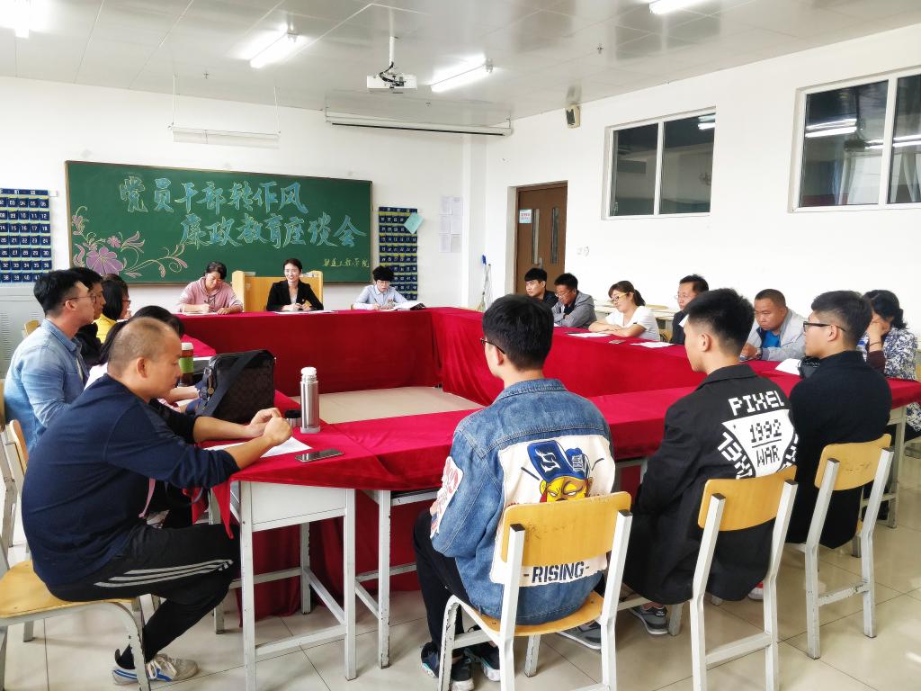 为进一步贯彻落实学院党委工作安排,积极传达党风廉政警示教育会议精神,推进铁道工程分院党风建设和师德师风建设,转变党风和工作作风,进一步将会议精神融入到教育教学中去,铁道工程分院于9月19日下午召开“党员干部转作风暨廉政教育师生座谈会”。分院党总支书记韩兵兵、副院长李东侠、办公室主任闫晶、全体党员教师及学生党员参加了会议。