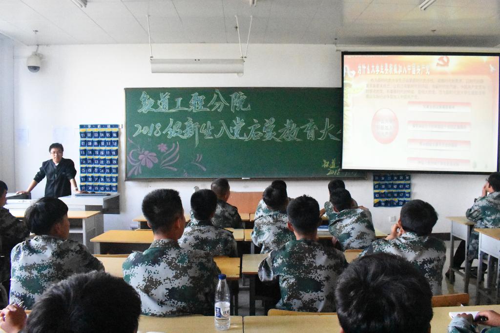 9月19日下午,铁道工程分院以班级为单位开展了2018级新生入党启蒙教育。分院党总支书记韩兵兵,团委书记张慧茹,辅导员王志强、张坤、王帅宇等五位老师分别对十个班级进行了授课。各位老师向同学们详细地介绍了党的基本知识,正确的入党动机和发展党员程序等,对入党所具备的基本条件和成为党员的具体要求进行逐条解读,对入党申请书和思想汇报撰写的基本格式和需要注意的问题进行了说明。他们鼓励全体新生,要提高政治觉悟并坚定理想信念、勤于实践,思想上积极向党组织靠拢,加强学习,要立大志、长才干,做“德行高尚、爱岗敬业、遵章守纪、技能精湛”的吉铁院特质学生,在实现中国梦的生动实践中放飞青春梦想。