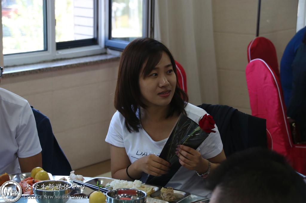 当日午间,正值教职工用餐的高峰期,老师们还在排队取餐,一首《重返十七岁》的音乐前奏,打破了往日的秩序和祥和,一群刚刚走出教室的年轻人手拿麦克风,怀抱鲜花,一拥出现在了老师们的餐桌前,“当时死记硬背那些格言条规,这么多年我终于学会,就算拥有曾经沧海的智慧,我们还是新新人类。”伴着激扬的节奏,同学们用青涩的语言,表达着自己成长的变化,以此感恩老师们在成长中给予的指导和点播,感恩老师们在学业上给予的领航和扶持,感恩老师们在生活中的耐心和陪伴。