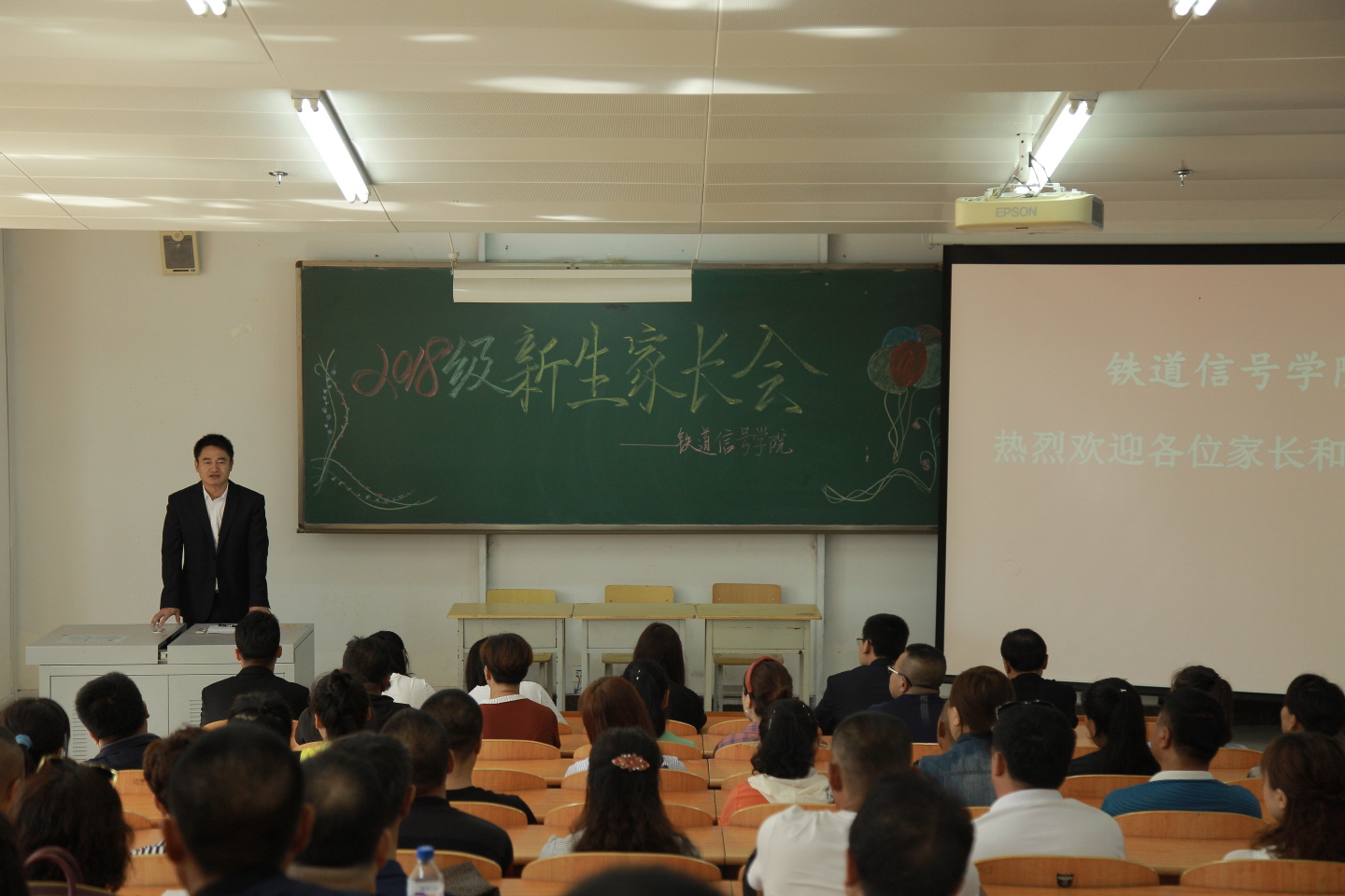 为了更好的增强学生家长对铁道信号分院的了解,加强家长与分院之间的密切沟通,铁道信号分院于9月1日上午在教学楼阶梯教室召开2018级新生家长会。铁道信号分院党总支书记郝延春、办公室主任陈婷婷、信号教研室主任李宽、通信教研室主任郐洪杰、设备教研室主任卢广文、学办主任曹阳、团委书记李佰玲、辅导员马帅、18级全体新生及新生家长代表参加了本次会议。会议由团委书记李佰玲主持。