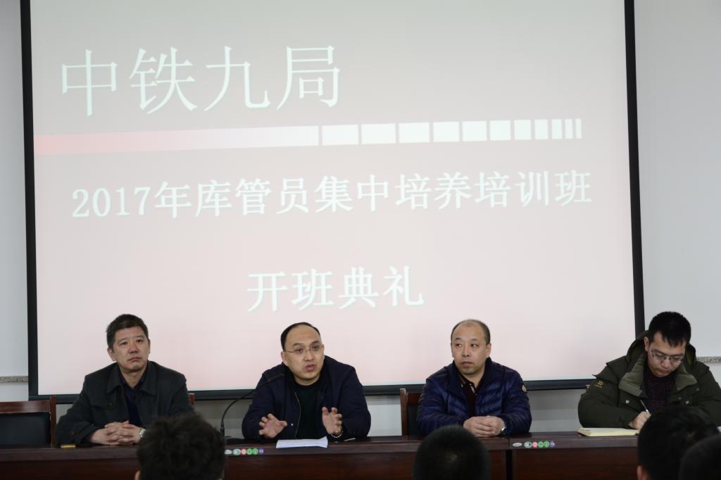 2017年3月8日15:00,中铁九局库管员培养培训开班典礼在干部培训楼305教室如期举办。中铁九局人力资源部部长郭怀忱,系党总支书记马建华,辅导员魏嘉良以及来自四所学校的44名库管员培训班学员参加了典礼。典礼由铁道工程系系主任徐光华主持。