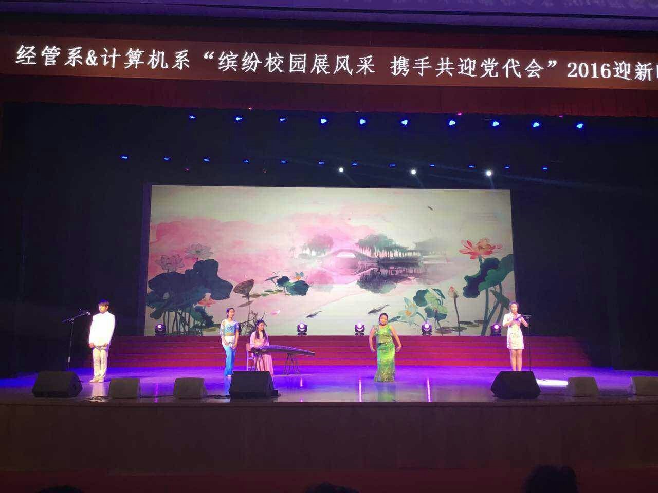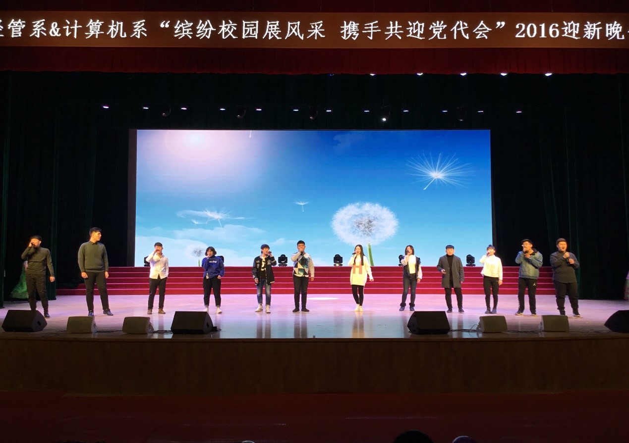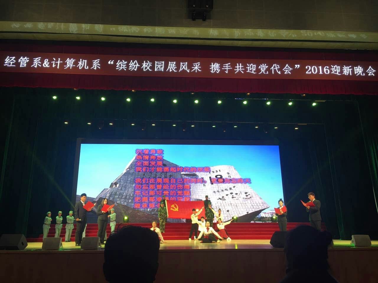 为营造浓厚的宣传舆论和校园文化氛围,引导广大师生以饱满的热情和良好的精神风貌迎接学院第二次党员大会的胜利召开,同时也为迎接2016级新同学,计算机科学技术系与经济管理系于12月7日下午15:30在大学生活动中心举办以“缤纷校园展风采 携手共迎党员大会”为主题的2016级迎新晚会。除计算机系与经管系全体师生外,学院学生处、团委及兄弟系部的领导老师也应邀出席此次晚会。