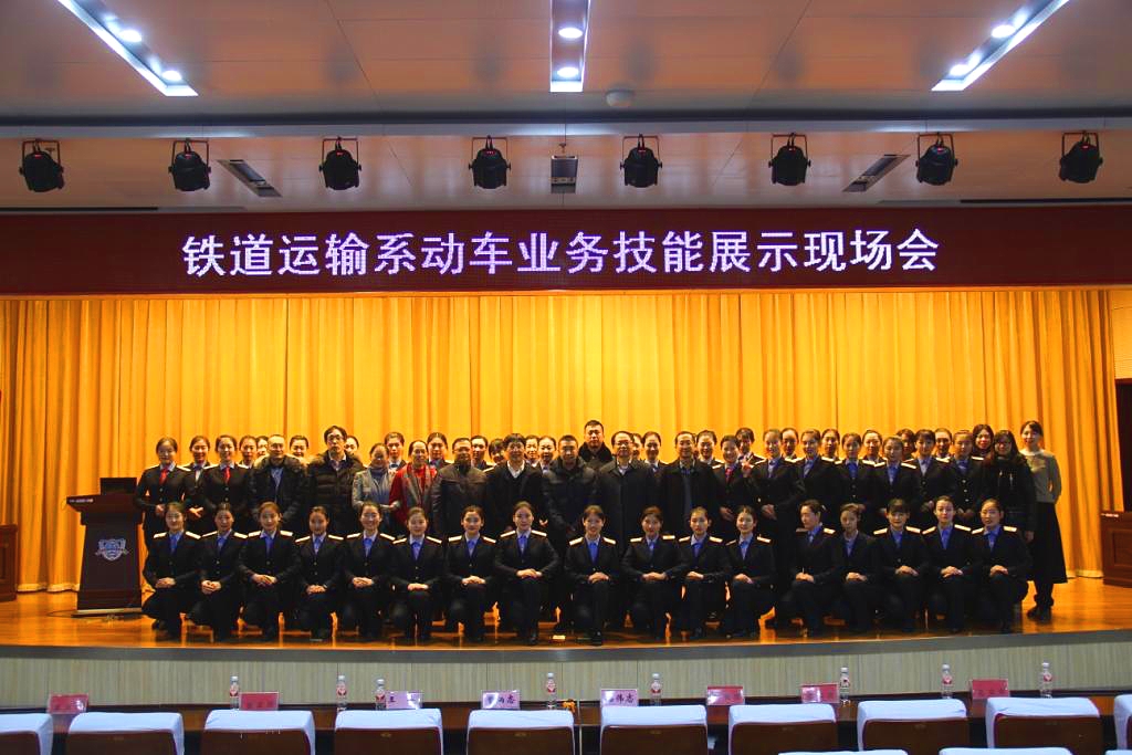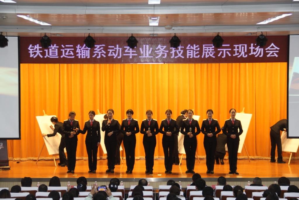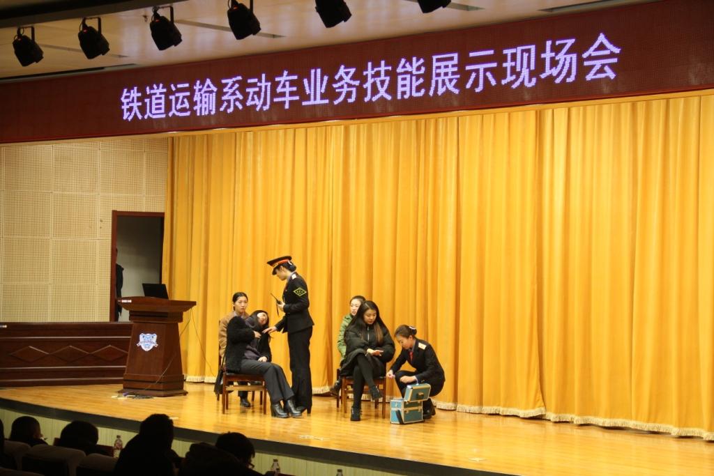 本次业务技能展示现场会由铁道运输系高铁乘务教研室承办,长白山技能名师范先云担任总策划,吴荣波、魏鸿儒、王宇三位专任教师担任指导教师,展示现场会共分成客运业务技能展示以及才艺展示两个部分。同学们相继展示了《铁路旅客运输规程》、《铁路旅客运输办理细则》、《铁路客运运价规则》、《中华人民共和国铁路法》一口清,背画《北南方结算站示意图》以及“五大干线”站顺,熟练的业务技能赢得了全场的热烈掌声。除此之外,学生们还自编自排了应急演练小品,对于客运规章的熟练运用并配合着惟妙惟肖的表演,展示了列车长、列车员的岗位标准以及作业流程,使现场师生更加直观地了解了铁路动车业务的办理规范,将现场会推向高潮。
