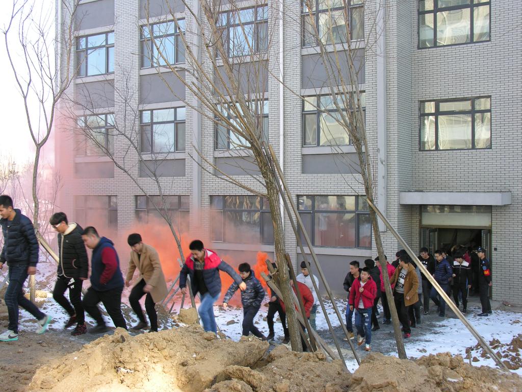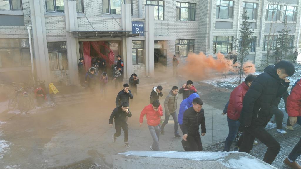 12:20时,消防疏散演练正式开始。随着警报响起,公寓立即启动火灾应急疏散预案,各系学生按照规定的路线有序疏散,经过9分钟的有序疏散,公寓楼内学生全部撤离到安全地带。