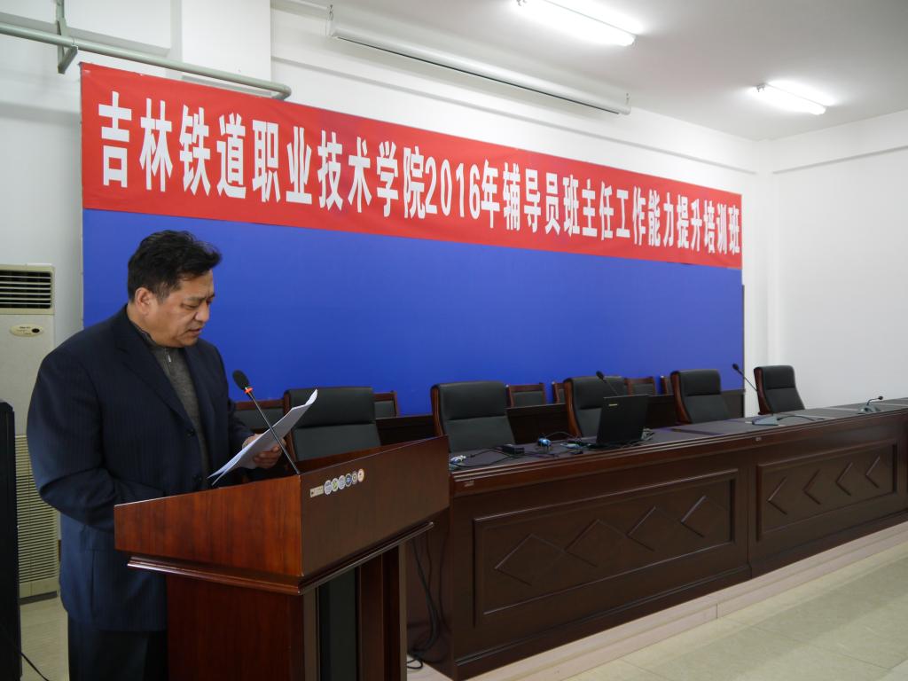 根据学院2016年学生工作要点安排,学生处于2016年11月25日下午,在行政办公楼五楼会议室举办了“学院2016年辅导员班主任工作能力提升培训班”开班仪式和首场培训报告会,参加开班仪式和报告会的有全体学工干部和班主任共计65人,学生处处长刘树全主持了开班仪式和报告会。
