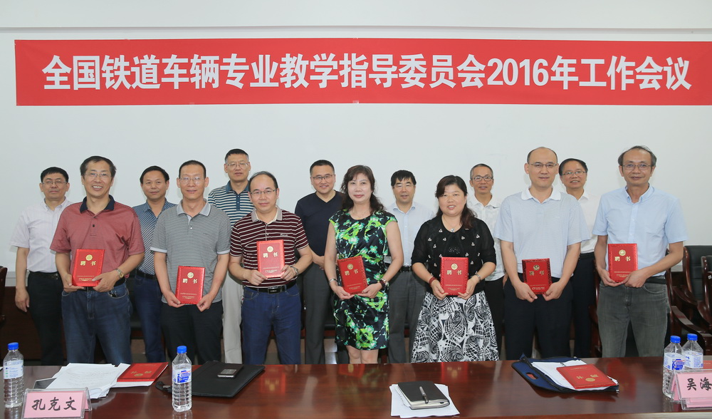 会上,周云龙院长代表学院致欢迎辞,余明贵副处长代表铁路总公司就校企合作、人才培养质量工作发表讲话。张玉光处长宣读新一届铁道车辆专指委成员名单。与会领导为新一届委员颁发了证书。学院教学副院长王华教授被聘为铁道车辆专指委副主任委员。