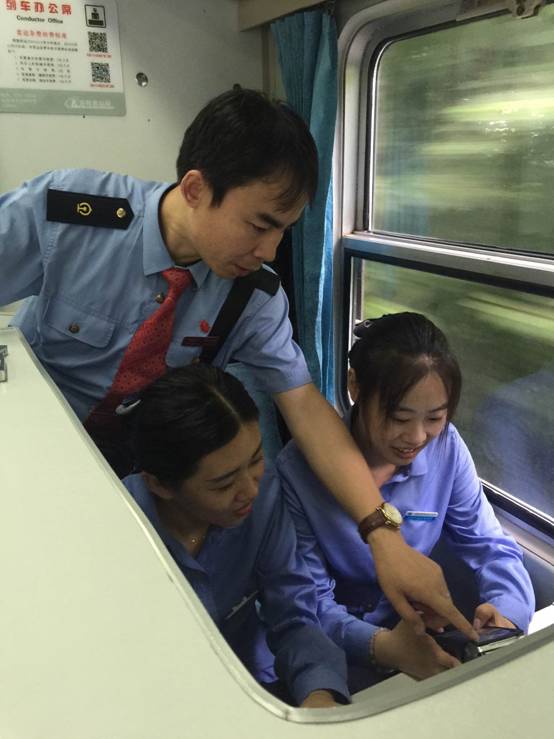实习剪影4:学生在普速列车上学习补票业务的办理
