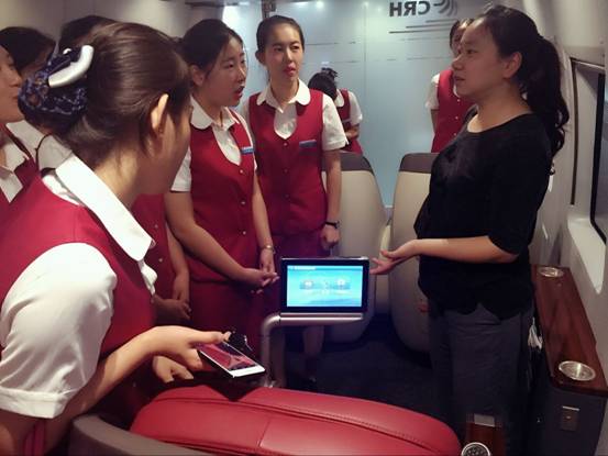 实习剪影3:学生在动车组列车上学习新设备的使用