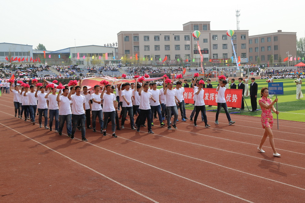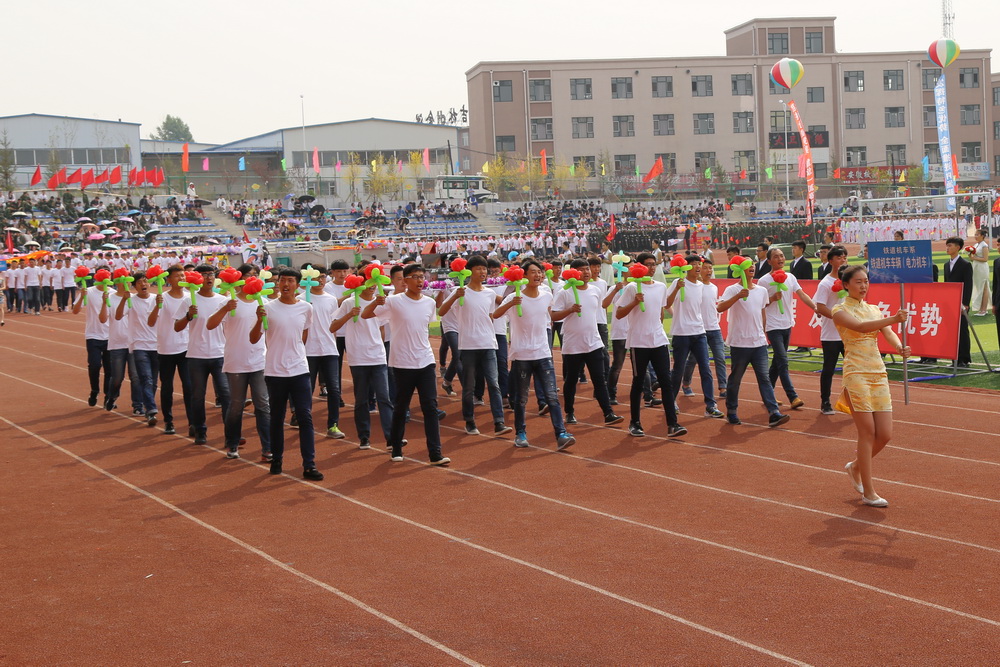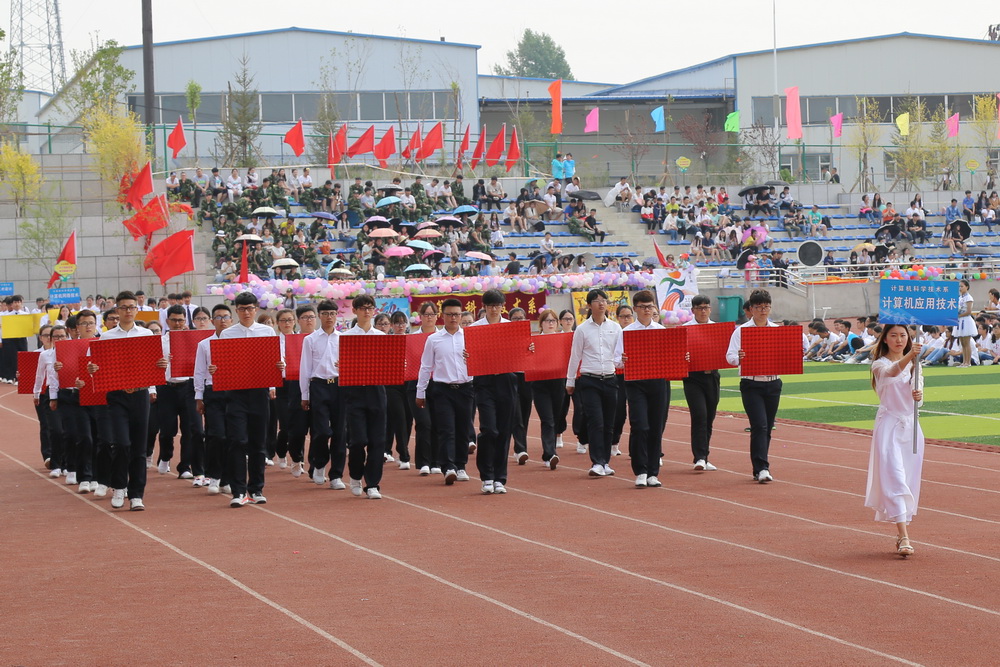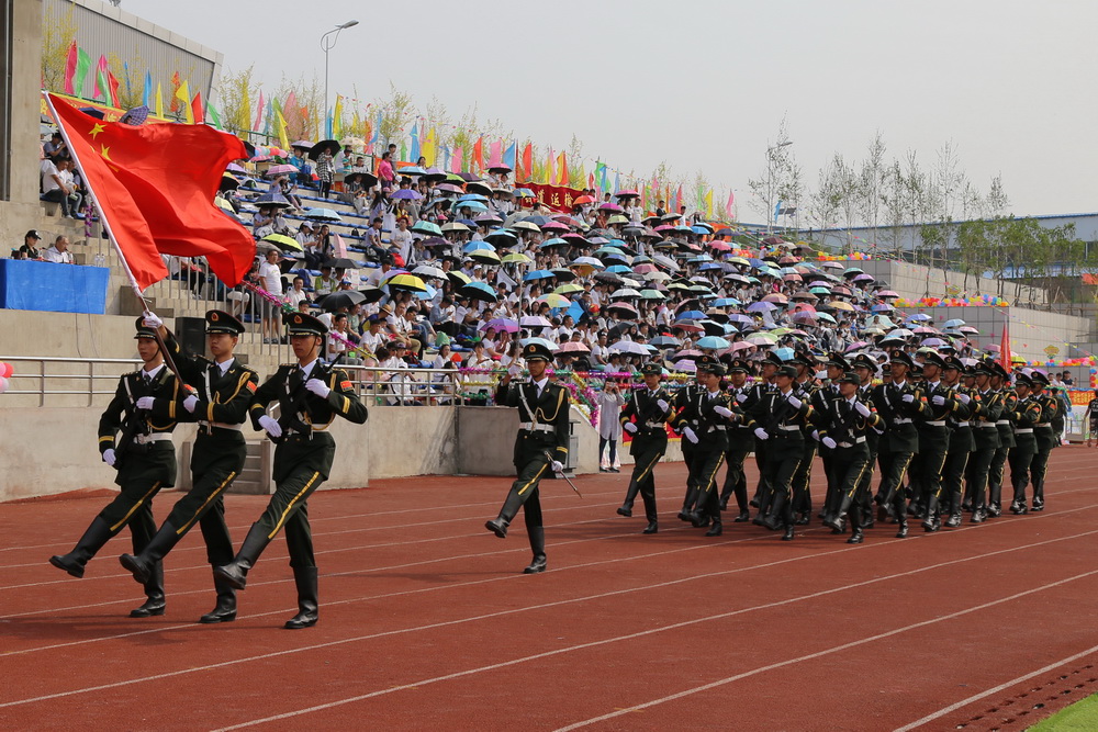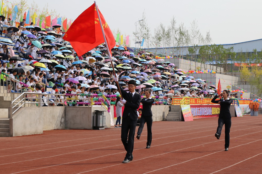 8:00时,运动会正式拉开序幕,伴随着《运动员进行曲》激昂的旋律,接受检阅的37支方队在校旗、会旗的引领下,踏着整齐的步伐,喊着嘹亮的口号,依次通过主席台。