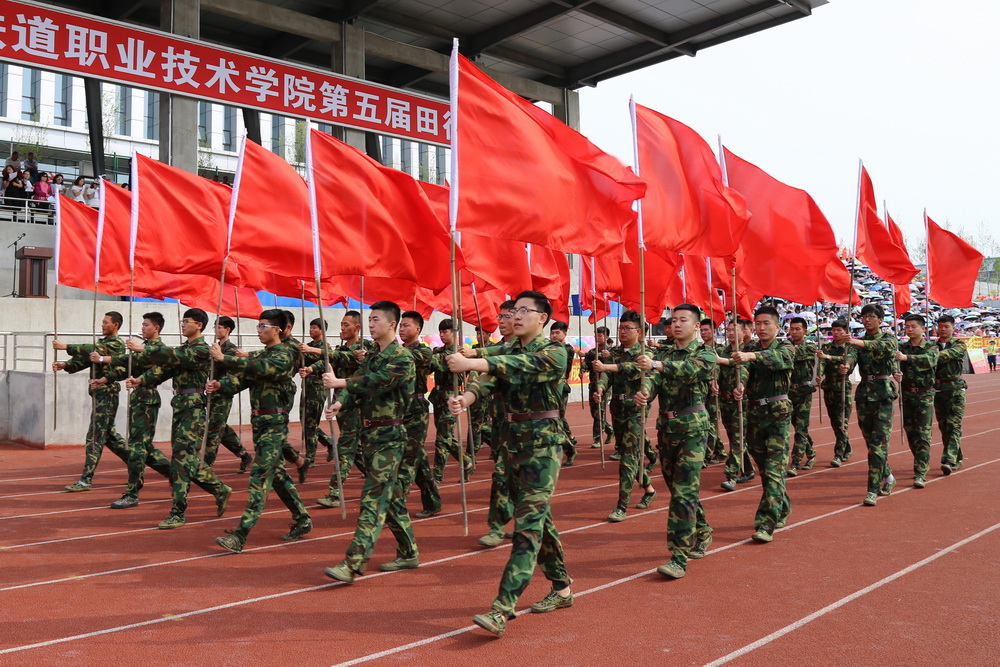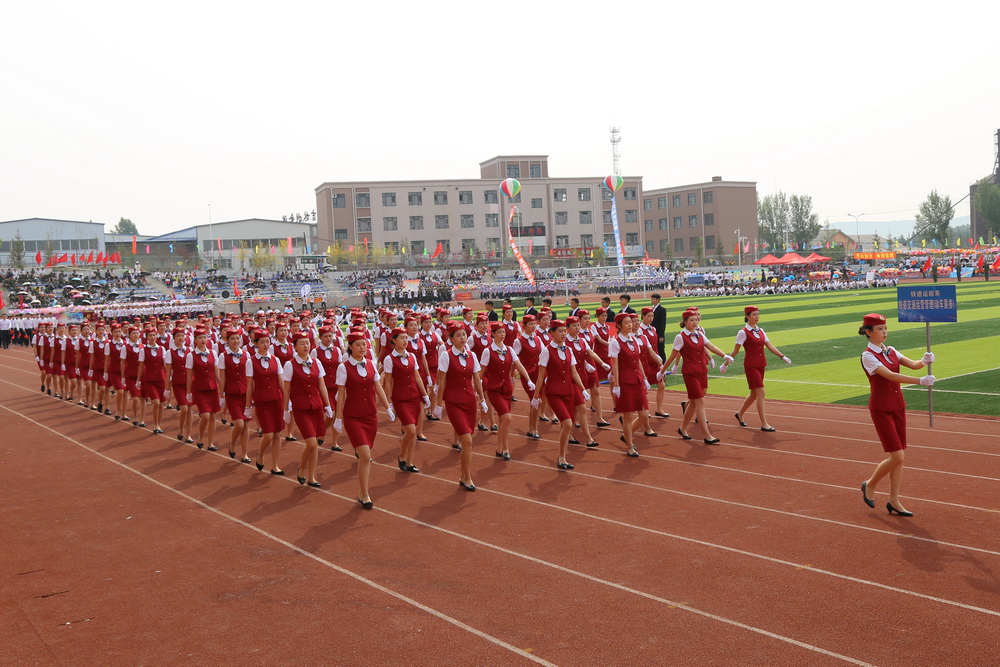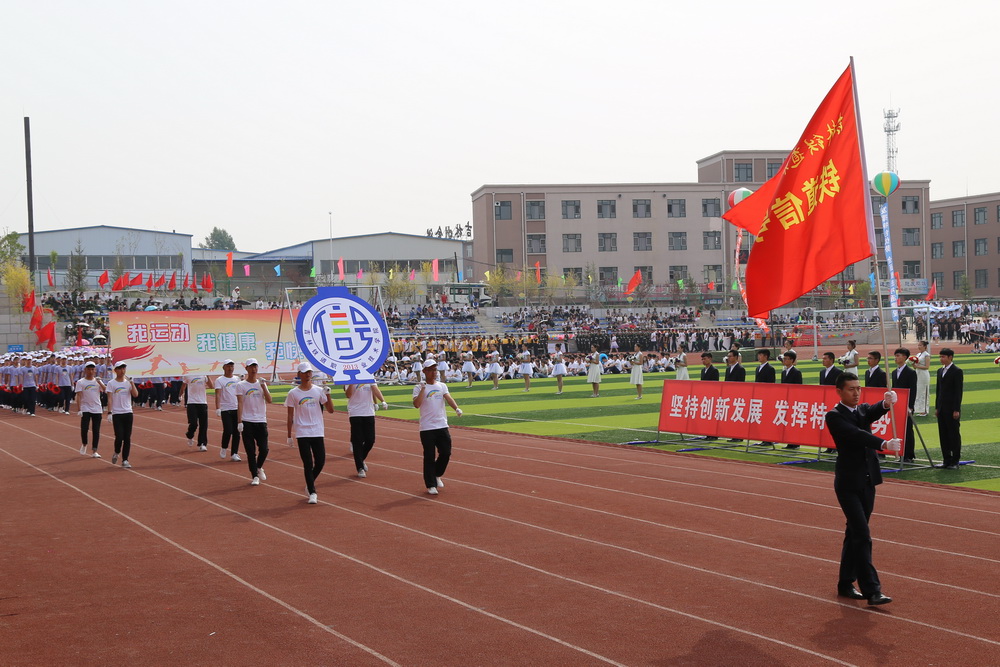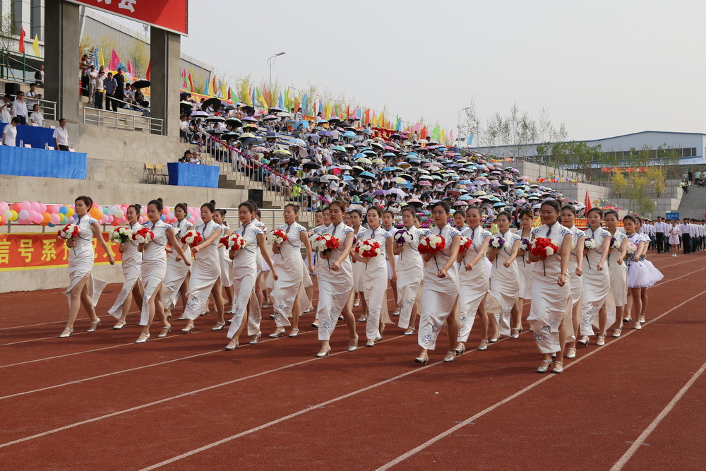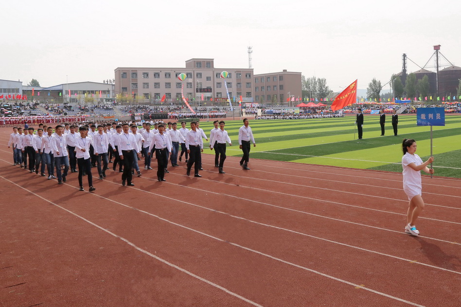 8:00时,运动会正式拉开序幕,伴随着《运动员进行曲》激昂的旋律,接受检阅的37支方队在校旗、会旗的引领下,踏着整齐的步伐,喊着嘹亮的口号,依次通过主席台。