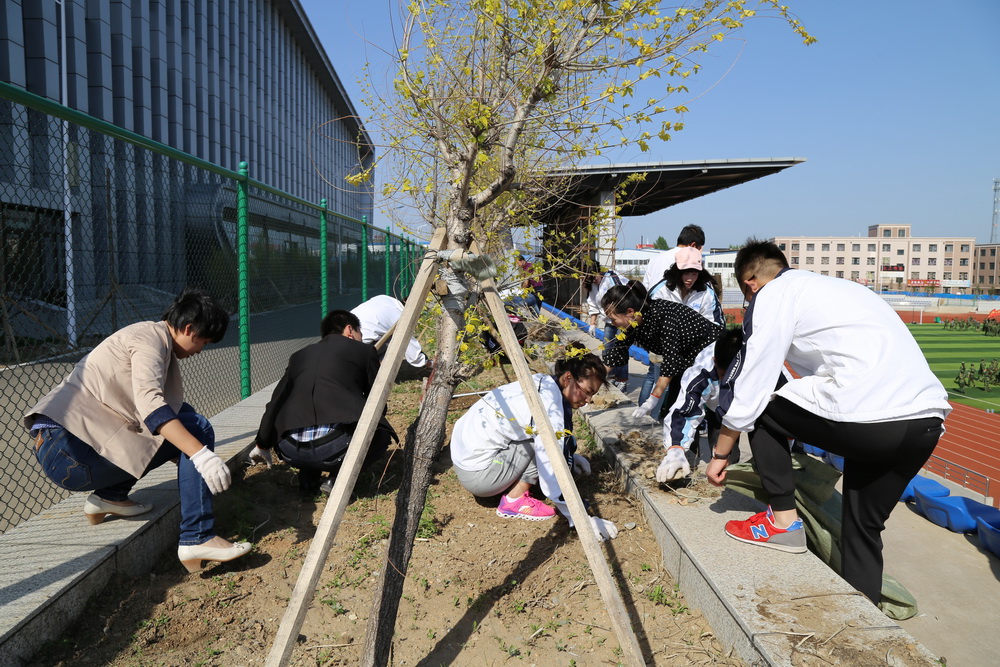 经过大家的共同努力,花坛里呈现出一番新景象,平整而又干净,将来直接种植上花草后,整个体育场将显得更加清新而有活力。