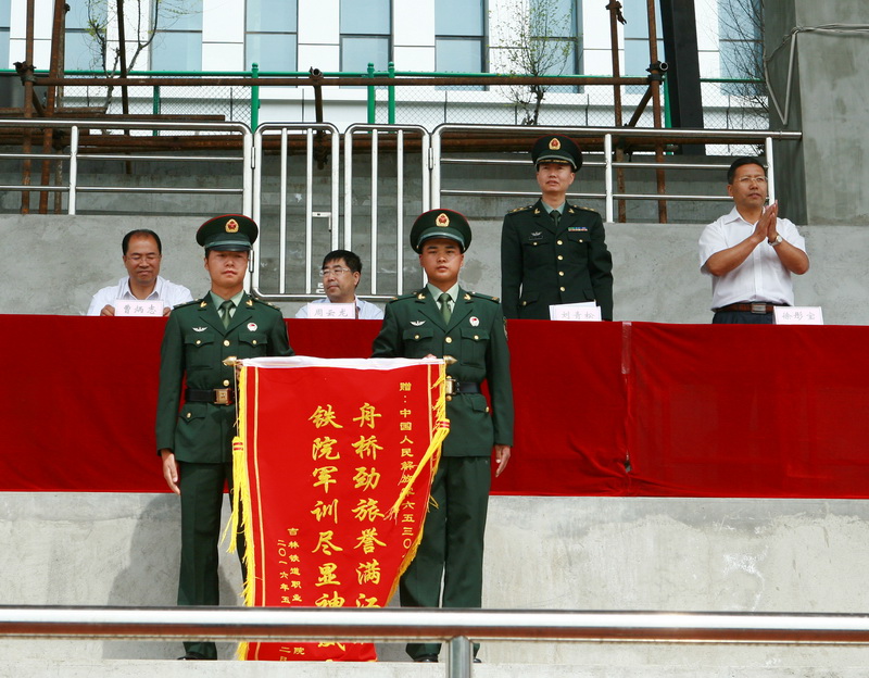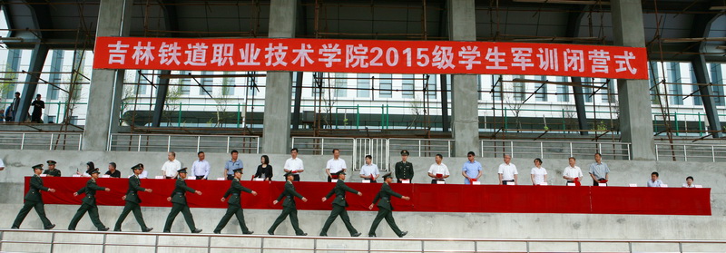 闭营仪式上,院长周云龙检阅了2015级全体参训同学,学院全体军训学员分9个营32个连队进行了军训成果汇报分列式表演。纪委书记徐彤宝代表学院向65307部队赠送“舟桥劲旅誉满江城 铁院军训尽显神威”锦旗。副院长田雷宣布军训表彰决定,对10个先进集体、220名优秀个人进行了表彰,学院领导及部队领导为获奖的先进单位和优秀个人代表进行了颁奖。