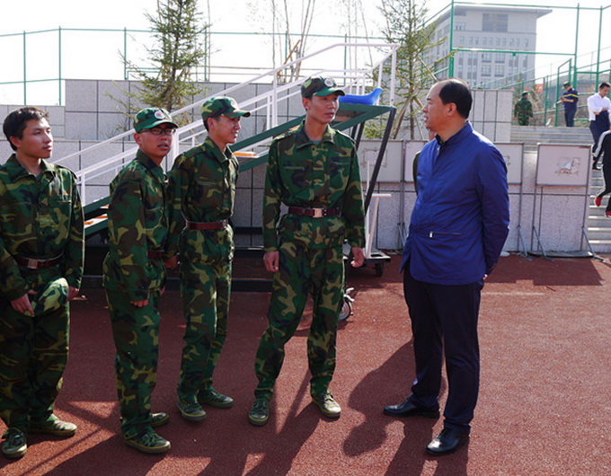10日下午,党委副书记曹炳志率领学生处、武装部负责人和学生处工作人员对院内四个军训地点进行了检查。