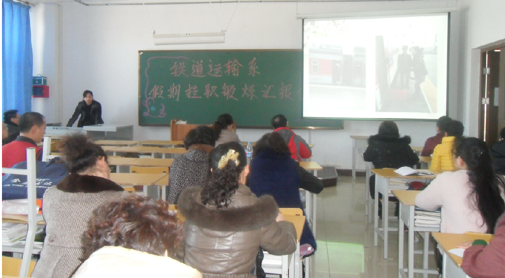 本次铁道运输系挂职锻炼小组共分派6组。其中四组分赴校外“四平站”、“吉林客运段K75/78次列车”、“吉林车务段吉林站”、“吉林车务段口前站”进行挂职锻炼,代表教师李景华、魏鸿儒、张力鑫、段秀军分别就从事的车站调度员、列车乘务员、货运员、售票员、安检员、车站值班员等岗位工作进行汇报;两组分赴校内进行生产实践活动,代表教师刘秀丹、于兆宇分别就城轨运营行车调度员、物流业务员等工作进行汇报。