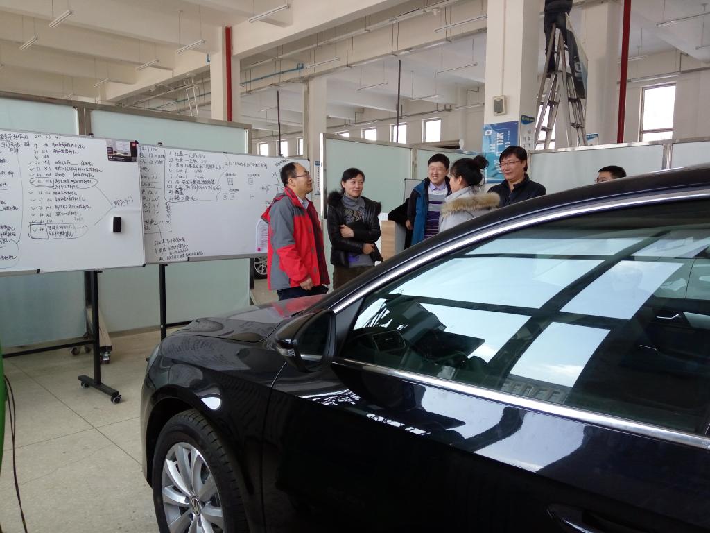 会议第二部分由李秀春科长、金鹏涛科长对参与挂职锻炼的教师进行全程考核。各个参加挂职锻炼的教师逐一汇报假期锻炼成果,汇报采取边演示、边讲解的方式进行。每位教师结合自己的训练内容,选取其中的一个部分并结合自己设计的实训标准或任务书、任务单等材料进行讲解和演示,详细地说明课程的教学组织过程。在演示过程中,金鹏涛科长还与假期参与汽车营销技能大赛训练的学生进行了互动,以客户的身份体验了营销过程。