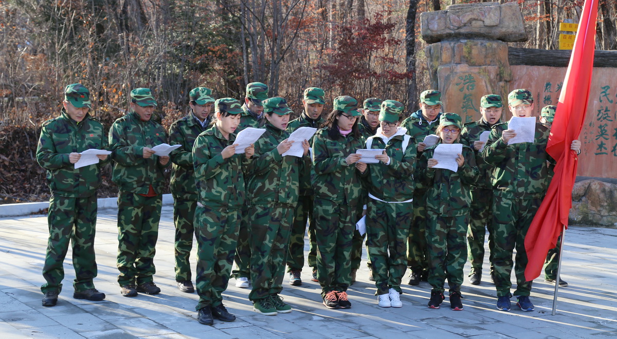 7:00时,在市委党校教务处秦志罡处长的组织下,于学院中心广场举行了简短的活动启动和授旗仪式。去营地的路上,由市委党校满春雨和侯欣桐老师在车上教唱了《东北抗联第一路军军歌》、《露营之歌》等抗联歌曲。到达目的地后,由市委党校崔浩琳老师作了“艰苦奋斗,敢于牺牲”主题教育,学员们参观了东北抗联蒿子湖秘营纪念馆抗联英雄事迹展览。之后,由市委党校王凤伟老师组织,院团委盛继前书记领誓,参加培训的全体党员重温了入党誓词。午餐后,学员们在营地杨靖宇将军的雕像下分四组进行了歌咏比赛。