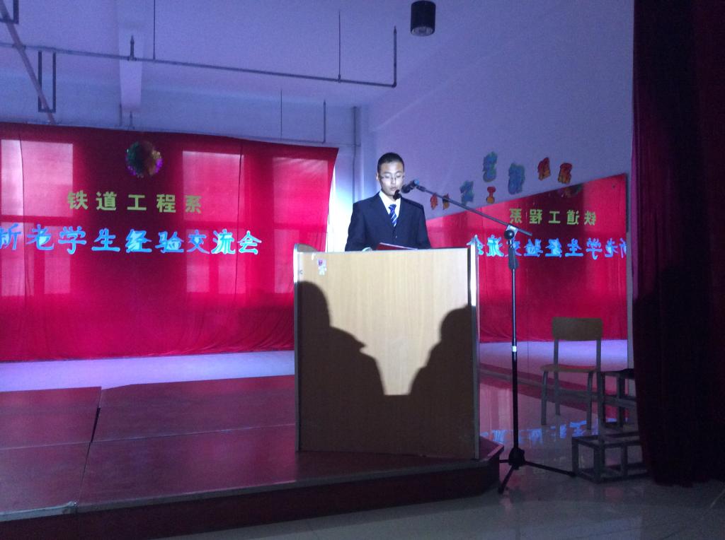 | 学院学生会主席、铁道工程系第八届学生会主席王先宇做交流发言 |