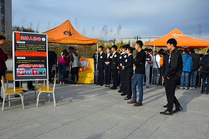 在中心广场上,朝气蓬勃的口号、精彩纷呈的表演、绚丽多姿的海报,还有令人目不暇接的展位,场面热闹非凡。各个社团的成员们热情、耐心、细致地为来往驻足咨询的同学们介绍社团的组织构架及其日常活动,用独具特色的方式展示着社团的风采,铁院校园文化之异彩纷呈与个性鲜明,在每个社团的身上得到淋漓尽致的展示。博学深思者有之,舞文弄墨者有之,载歌载舞者有之,特别是新民乐协会吹拉弹唱、国旗护卫队英姿飒爽、轮滑协会飞驰全场、礼仪协会的女孩们穿着红色旗袍走起了模特步、街舞协会自制舞蹈场地跳起了hiphop、crh乐队拿起手中的“武器”开始燃烧全场。28家社团各展风采,校园文化的蓬勃发展、同学们的青春活力可见一斑,令前来报名的新生们兴奋不已。