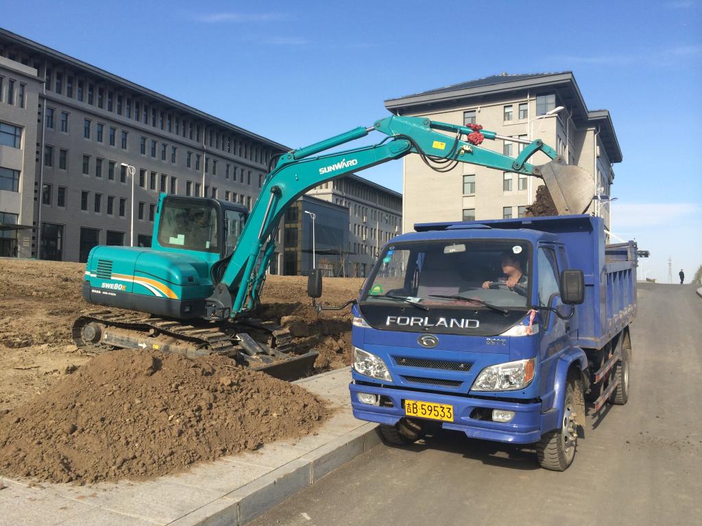 为全面建设节约型校园,学院后勤与资产管理处利用钩机、铲车、翻斗车等车辆设备,积极完成学院的基础建设和场地平整等工作任务。