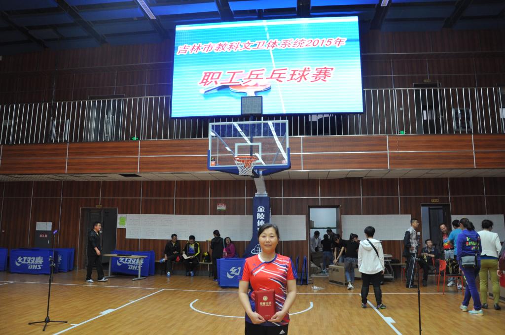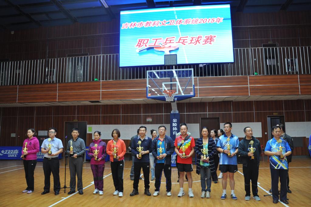 ,吉林市教科文卫体系统2015年职工乒乓球赛在全民健身中心圆满落下帷幕,职工共有20个代表队100多名运动员参与了此次乒乓球的比赛。经过前期认真准备,由学院工会主席李彦任领队,王志东、杨有光、杨再辉、谢立宏、吴限红5名运动员组成的代表队参加了此次比赛。