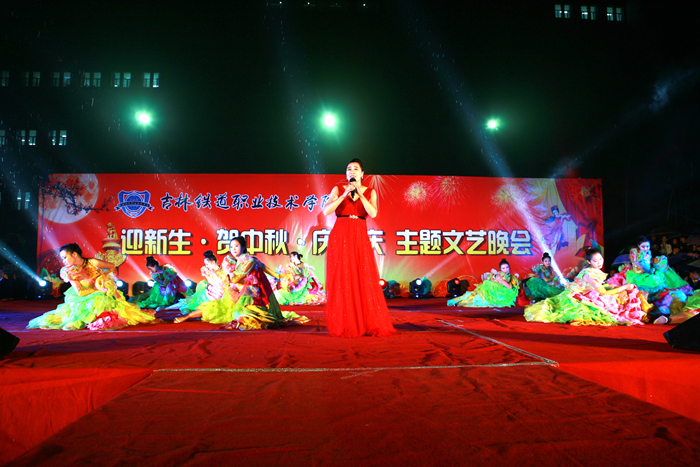 秋风细雨晓云开,一肩行囊负壮怀,辛苦遭逢书香路,学海无涯泛舟来。演出现场虽无皓月当空,却有绵绵细雨,丝毫不影响师生观众的热情。曹炳志副书记向晚会致辞:一是代表学院师生和学工系统对来自全国25个省、自治区、直辖市的2675名新同学表示热烈诚挚的欢迎;二是感谢全体新生和家长的信任,选择了吉林铁道职业技术学院,学院不会让学生和家长失望;三是祝愿全体新生要谨遵“明德 弘业”的校训,勤学、明辨、修德、笃实,早日成为社会主义合格的建设者和可靠接班人。