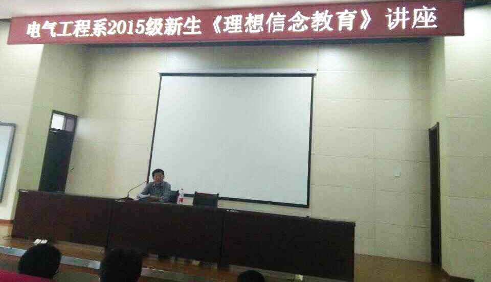 按照学院2015级新生入学教育计划的统一安排,电气工程系党总支于2015年9月21日下午在培训中心报告厅举办了2015级新生《理想信念教育》专题讲座。讲座由辅导员郭迪主持,系党总支书记刘洪波主讲。