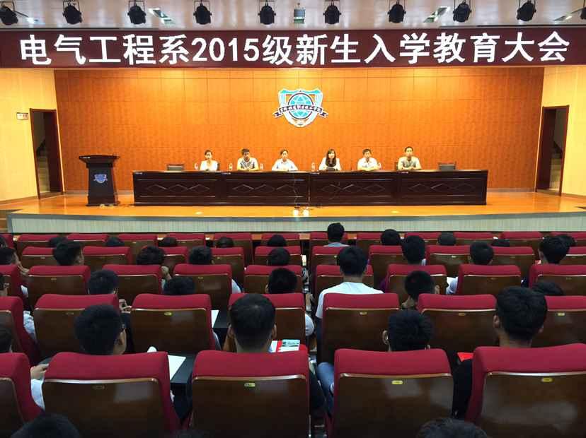 2015年9月7日,电气工程系在图书馆报告厅进行了2015级新生入学教育。系党总支书记刘洪波、主任张辉、副主任刘振波、学办主任金宇、团委书记徐薇,辅导员郭迪莅临会议。