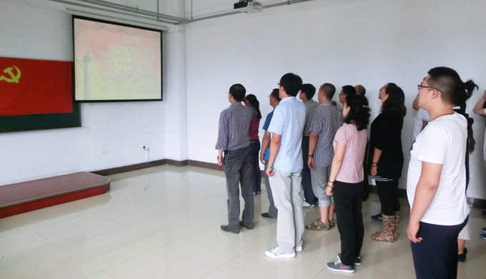 在重温入党誓词活动中,由系办公室主任吴荣波领誓,党员们面对鲜艳的党旗,高举右手,庄重地重温了入党誓词。入党誓词的十二句话,句句千钧,概括了我们党对党员的基本要求,也概括了党员对党组织和党的事业所应承担的政治责任。