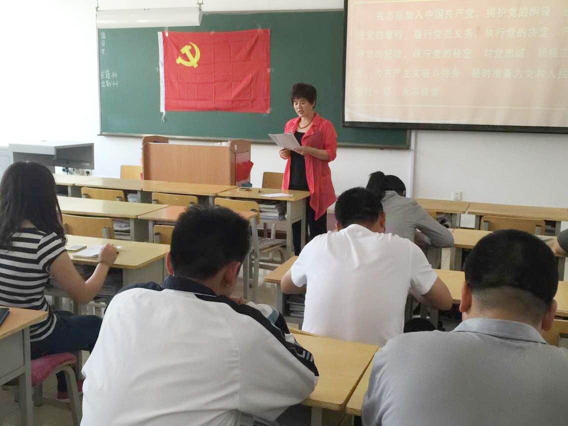 活动分为三个部分:一是全体党员在学生党支部书记王婧婧的带领下,面对党旗进行了宣誓;二是每名党员结合自身实际,从“如何进一步端正入党动机”、“我该如何做一名合格党员”等角度谈了个人体会;三是每名党员认真默写了一遍入党誓词。
