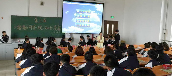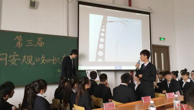 安全是铁路行业企业的头等大事,尤其对每天工作在铁路一线的接触网网工,具有极其重要的意义。为进一步强化电气工程系电气化铁道技术专业的学生对接触网安全操作和规范操作的意识,加深学生对接触网安全工作规程的牢固掌握和理解, 2015年6月10日,电气工程系第三届“接触网安全工作规程”知识竞赛总决赛在教学楼东401顺利举行。