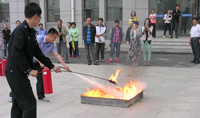 安全保卫处副处长李春哲、保卫干事王弘屿具体负责培训和演练。在培训过程中,主要介绍了日常工作和生活中容易出现的火源类型和常见的消防隐患以及相应的预防、处理方法;讲解了灭火器、消防栓的使用方法以及发生火灾时自救和应急疏散的注意事项。培训结束后,在室外还进行了现场灭火演练,各系代表分别进行了灭火器的实际操作。