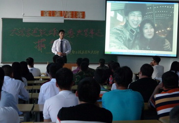 5月27日中午12:20教学楼515教室,举行我院大学生退役士兵优秀典型事迹报告会,来自9个系的学生干部代表和有意向当兵的学生共计80余人参加报告会,报告会由学生工作部(武装部)副部长韩兵兵主持。