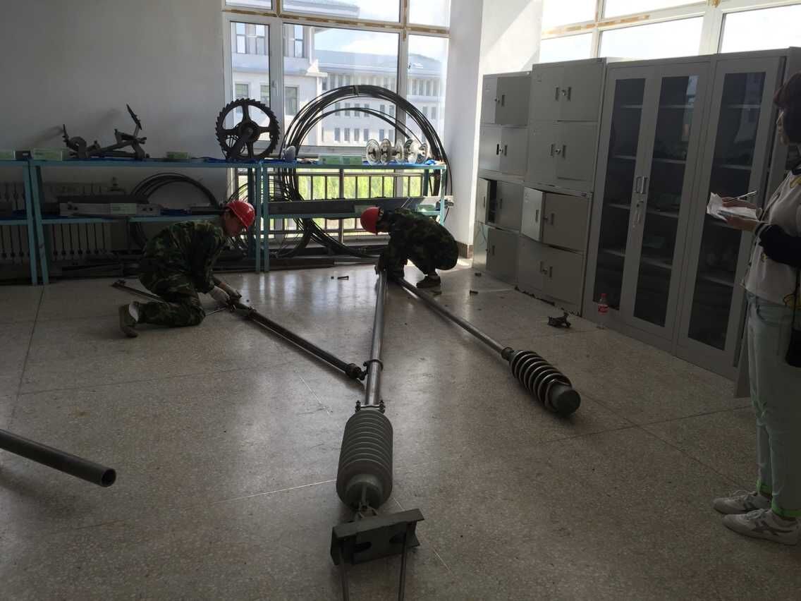 2015年5月21日14:00,电气工程系在学院4号实训楼接触网零件实训室区成功举办了中间柱腕臂地面组装职业技能大赛。