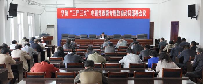 5月20日,学院 “三严三实”专题党课暨专题教育动员部署会议在办公楼五楼会议室召开。学院党委领导班子成员、全体中层干部参加会议。会议由学院院长周云龙主持。