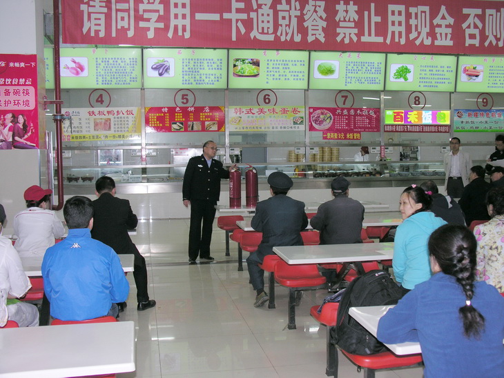 在培训过程中,培训人员主要介绍了日常容易出现的火源类型和常见的消防隐患以及相应的预防、处理方法;讲解了食堂初期火灾的扑救方法和灭火器的使用方法以及发生火灾时自救和应急疏散的注意事项。讲解结束后,在室外还进行了现场灭火演练,学生公寓、食堂、实训中心、图书馆和消防监控室等各部门代表分别进行了灭火器的实际操作。