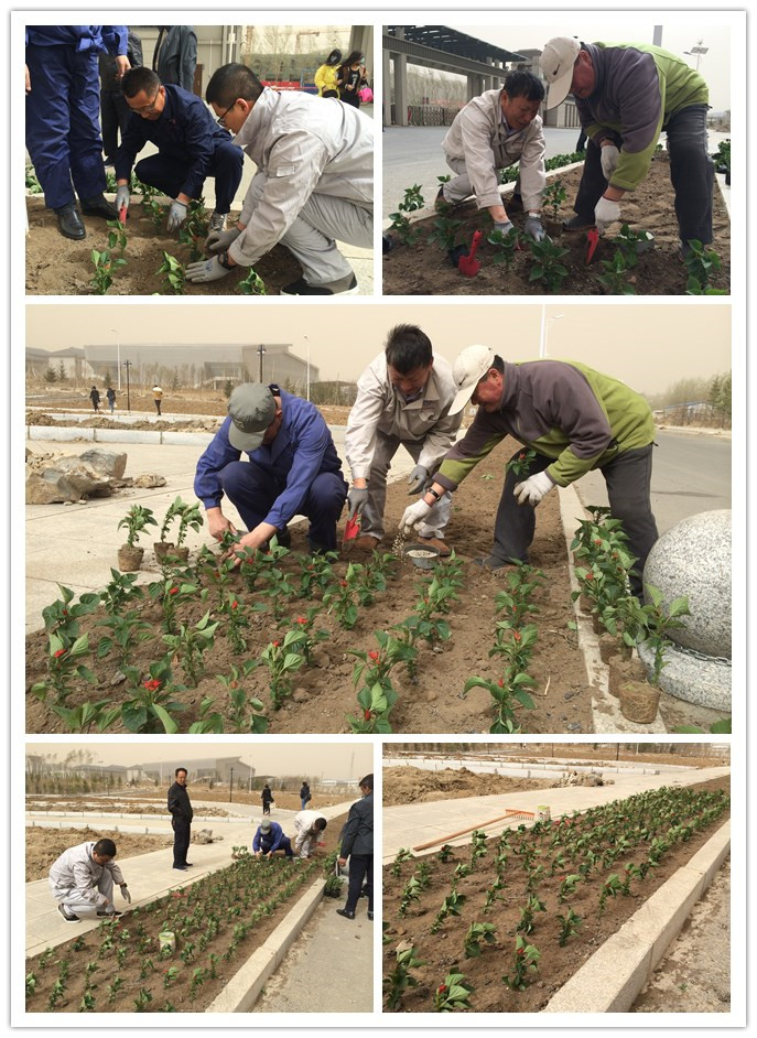 为美化环境,打造绿色校园,2015年5月5日13时,后勤与资产管理处党总支组织后勤全体党员干部为学院正门花池进行栽花劳动。