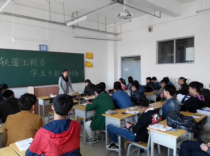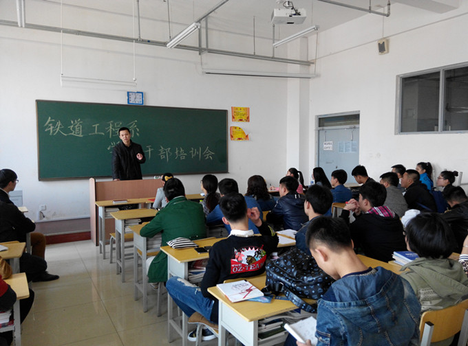 2015年4月22日中午,为提升学生干部能力素质,推动学生工作更好地开展,铁道工程系以会代训,对系主要学生干部进行了培训。系辅导员蔡丽梅、李哲、魏嘉良分别给在场的学生干部上了精彩而有意义的一课。