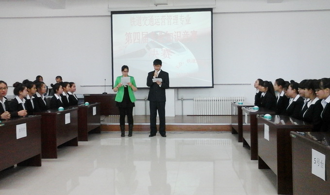为提高铁道交通运营管理专业学生专业素质,激发同学们对学习专业知识的热情,铁道运输系于2015年4月24日在培训中心305教室举办了“第四届铁道交通运营管理专业专业知识竞赛决赛”。铁道运输教研室谢立宏、凌人凤、段秀军三位老师担任竞赛评委。铁道运输系主任于伯良、系副主任王笑然、系办公室主任吴荣波、铁道运输教研室全体教师及铁道交通运营管理专业2013级、2014级学生代表到场观看了比赛。