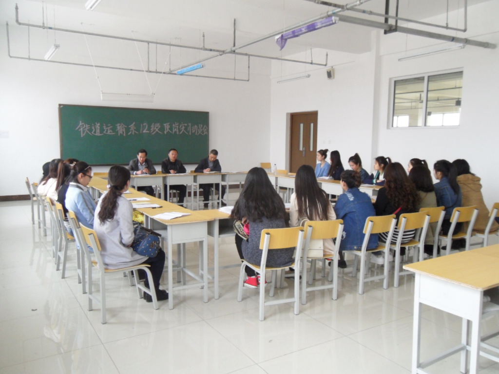 为了切实做好学生在顶岗实习培训期间的管理工作,铁道运输系落实学院《学生顶岗实习管理办法》,成立了学生顶岗实习管理小组。4月14日,在教学楼913教室,铁道运输系召开了“铁道运输系2012级顶岗实习学生动员会”,对顶岗实习学生进行专题教育,系党总支书记李生和系主任于伯良参加了动员会,并对学生在顶岗培训期间的学习、生活和工作方面提出了要求和希望。