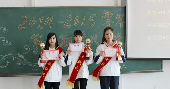 会上,尹平书记宣读2014—2015学年第一学期表彰决定。与会的各位领导老师向获奖的学生颁奖,受表彰学生代表吴雨桐,金梦、贲男三名同学分别发言,分享她们的学习心得,为广大同学树立学风建设的榜样。最后由姜彬峰主任做总结讲话。姜彬峰主任在讲话中指出,开展学风建设的重要意义及其深远影响,是进一步加强和改进学生思想政治教育工作的需要,是促进学生健康成长的需要,是加快我院事业发展的需要,并强调在去年“学风建设年活动”的基础上,全系要把抓学风工作长期坚持开展下去。