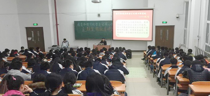 刘洪波书记从社会主义核心价值观的概念内涵、积极培育和践行社会主义核心价值观的重要意义、基本原则以及如何培育和践行社会主义核心价值观等四个方面进行了讲解,并结合学院《大学生诚信档案建设方案》和《大学生诚信教育年活动方案》,对学生进行诚信教育动员,教育学生要提高对建立诚信档案和开展诚信教育活动重要性的认识,要充分认识失信的后果和所要付出的代价。他号召同学们积极行动起来,要从我做起、塑造好个人诚信形象,从现在做起、营造好校园诚信氛围,要做一个严于律己、遵规守纪、以德立身、明礼诚信的新时期文明大学生。