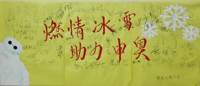 为开展好签名活动,系团委进行了广泛宣传,介绍了我国先后成功举办的奥运会、南京青奥会等赛事的情况,介绍了为推动奥林匹克运动冬季项目在我国发展,北京市和张家口市联合申办2022年第二十四届冬奥会的情况,向同学们发出“燃情冰雪,助力奥运”的倡议,并进一步号召广大同学从自身做起,弘扬奥运精神,争做时代先锋;从我做起,立即行动,为申奥添砖加瓦;从现在做起,加强锻炼,提高身体素质。