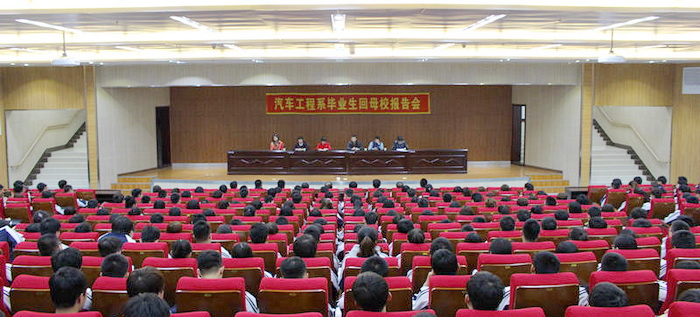 为了使2013级的同学进一步明确学习目标,找准自身定位,找出与企业需求的差距,为下一步进入企业顶岗实习做好思想上的准备,3月26日晚,汽车工程系在学院图书馆报告厅举办了优秀毕业生回母校报告会。汽车工程系党总支书记王力群,系学生工作办公室主任刘佳佳、辅导员闫瑞雪、辅导员罗伟以及2013级全体同学参加报告会。系团委书记孙业番主持报告会。