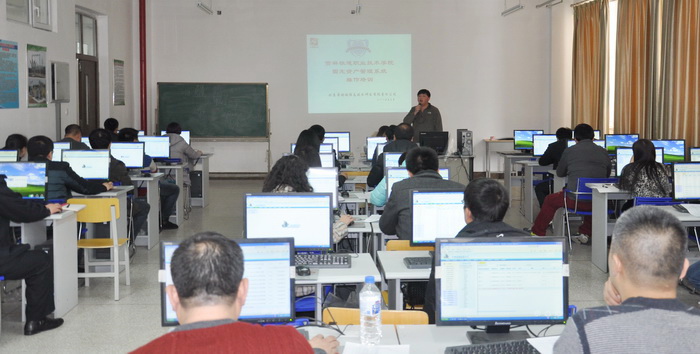 为推进数字化校园建设,全面实施固定资产动态管理目标,针对目前学院引进的资产管理软件平台,学院后勤与资产处管理处于2015年3月9日下午,在4号实训楼4305室,特邀请北京普诺迪信息开发有限责任公司技术人员对全院各单位、各部门的固定资产二级管理员进行了紧张细致的培训。