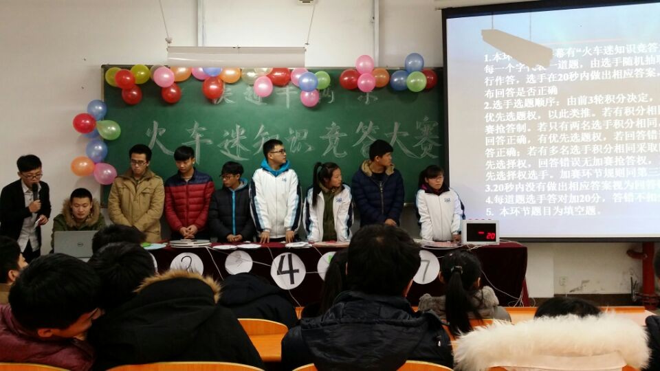 为了加深学生对专业知识的掌握和理解,了解铁路行业背景,推动铁道车辆系学风建设,铁道车辆系于12月17日举办了第二届“火车迷知识竞答大赛”。铁道车辆系主任李原福,学办主任李秀春,团委书记曹阳,辅导员张琦、王伟楠参加活动。