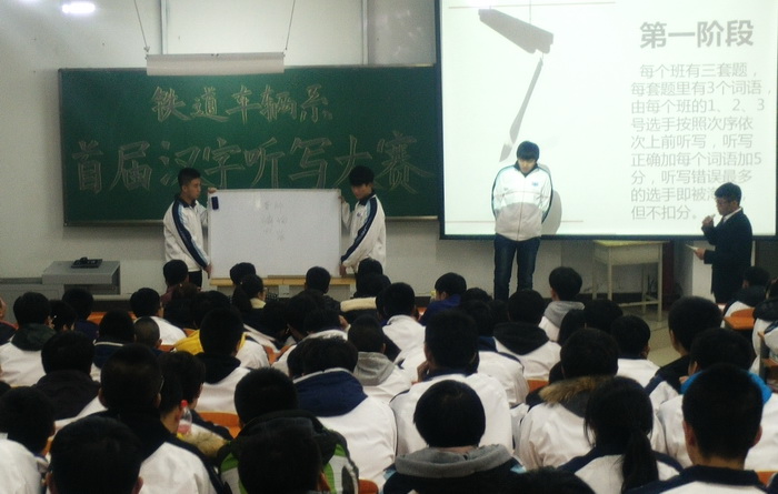 为推动学风建设,丰富学生的课余生活,提高大学生的汉字书写以及听写能力,扩展大学生的汉字储备量并提升书法水平,充分展现铁道车辆系学生的精神面貌和青春风采,铁道车辆系于11月18日,在教学楼东201举办首届汉字听写大赛活动。