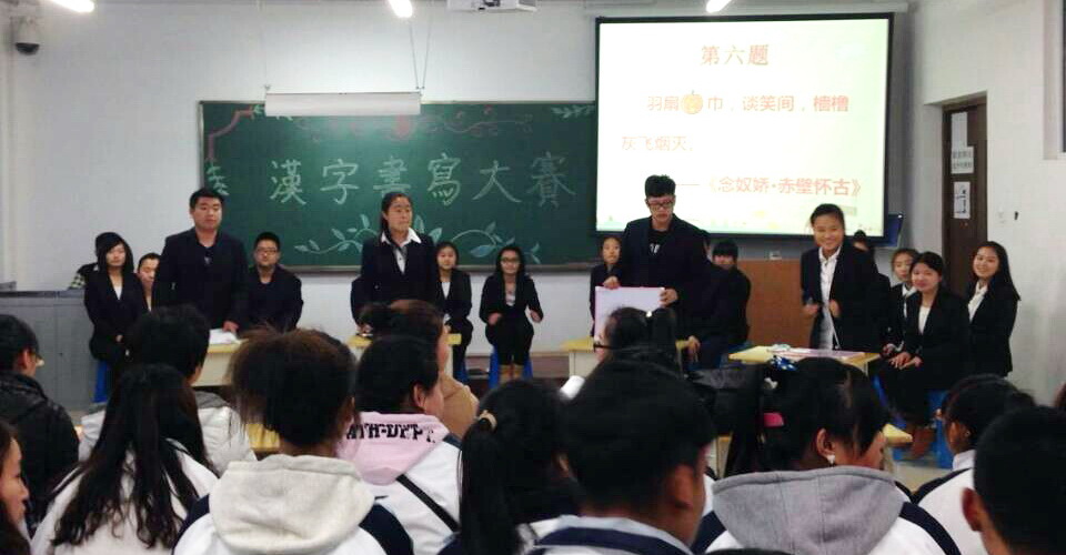 比赛共有三轮,第一轮生字,第二轮词语,第三轮成语,每轮比赛各队派出一名成员答题,其余四人轮流作答,答错者直接淘汰,最后以各队剩余人数多少决出胜负。2014级各班级均派出队伍参赛。比赛过程中,各队选手们都竭尽全力答题,主持人耐心讲解,评审人员公平公正,让比赛现场精彩异常。最后,在栾育维同学独奏的萨克斯《天路》声中,大赛拉上了帷幕。