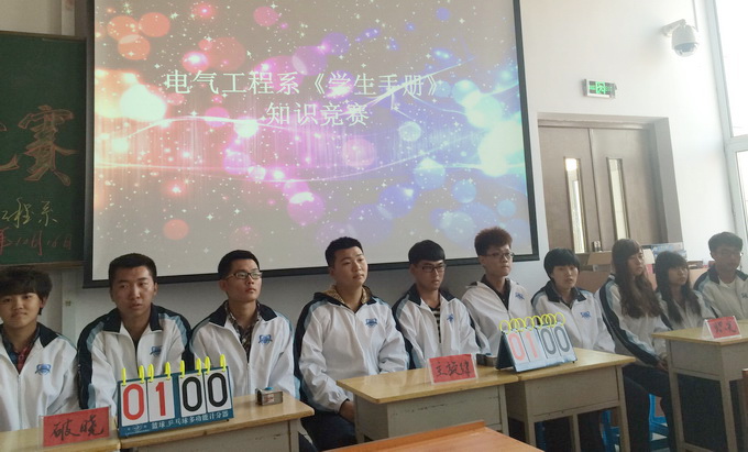 2014年10月16日,电气工程系在东402教室举办《学生手册》知识竞赛,出席比赛的系领导有系党总支书记刘洪波、学办主任金宇、团委书记徐薇。
