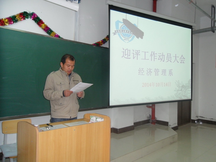 根据《教育部关于印发< 高等职业院校人才培养工作评估方案>的通知》要求,2014年10月,我院将迎来第二轮教育部人才培养工作评估。经济管理系全体师生高度重视,于2014年10月14日,在教学楼东201阶梯教室召开了迎评工作动员大会。经济管理系党总支书记刘本基、学工办主任高露、班主任张丽萍、黄勇、李景峰、马雪珍老师参加了会议。