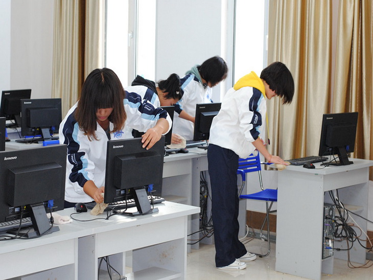 活动中,同学们表现得十分出色,发扬不怕苦,不怕累的精神,以极大的热情投入到活动当中去,每位同学都认认真真的完成自己的任务。伴随着同学忙碌的身影,原本散落着灰尘和杂物的窗台角落、桌子凹槽、鼠标底面、门的夹缝,甚至连最细小的键盘上的每个按键的缝隙,都被打扫的干干净净。
